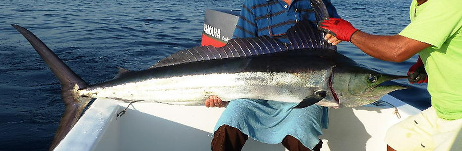 Pêche hauturière : Marlins bleus ou noirs, les espadons voiliers, les dorades coryphènes, les thons jaunes et les requins.